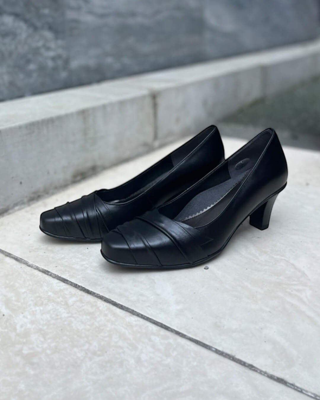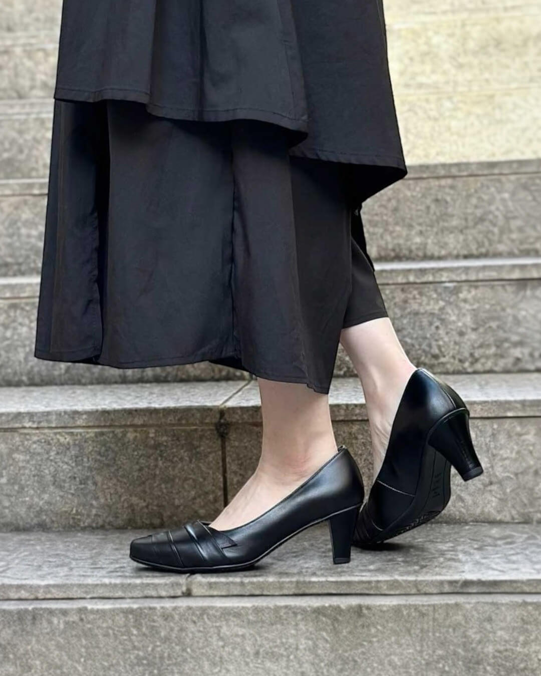 ✔ スタックヒールだからキズが目立ちにくい
