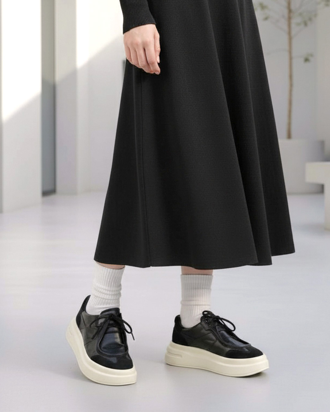 デザインはもちろんのこと、スニーカーソールで長時間の歩行も安定した履き心地でサポート