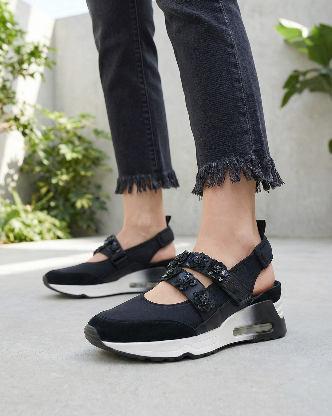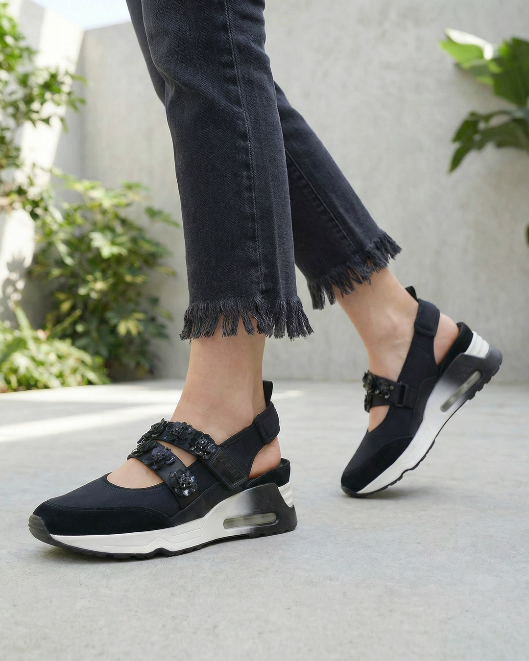 スニーカーとサンダルの魅力を兼ね備えた、 カジュアルからモードまで、スタイリングの幅を広げてくれる一足です。