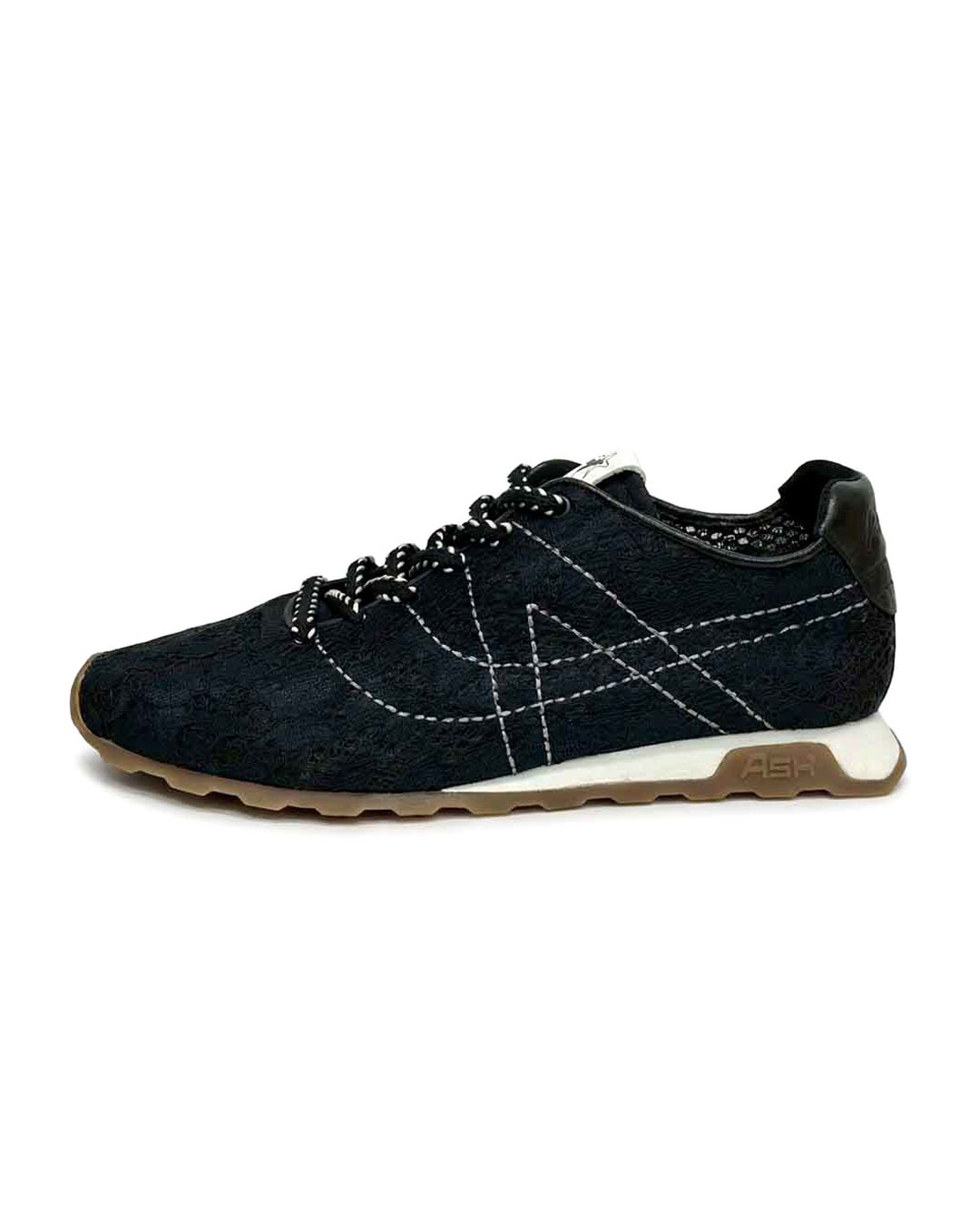 アッパー全体にレース素材を使用していますが、シューレースからソールまでモノトーンに仕上げているため、 甘くなりすぎずシックな印象になるため、カジュアルからキレイめまで幅広いスタイルを楽しんでいただけます。