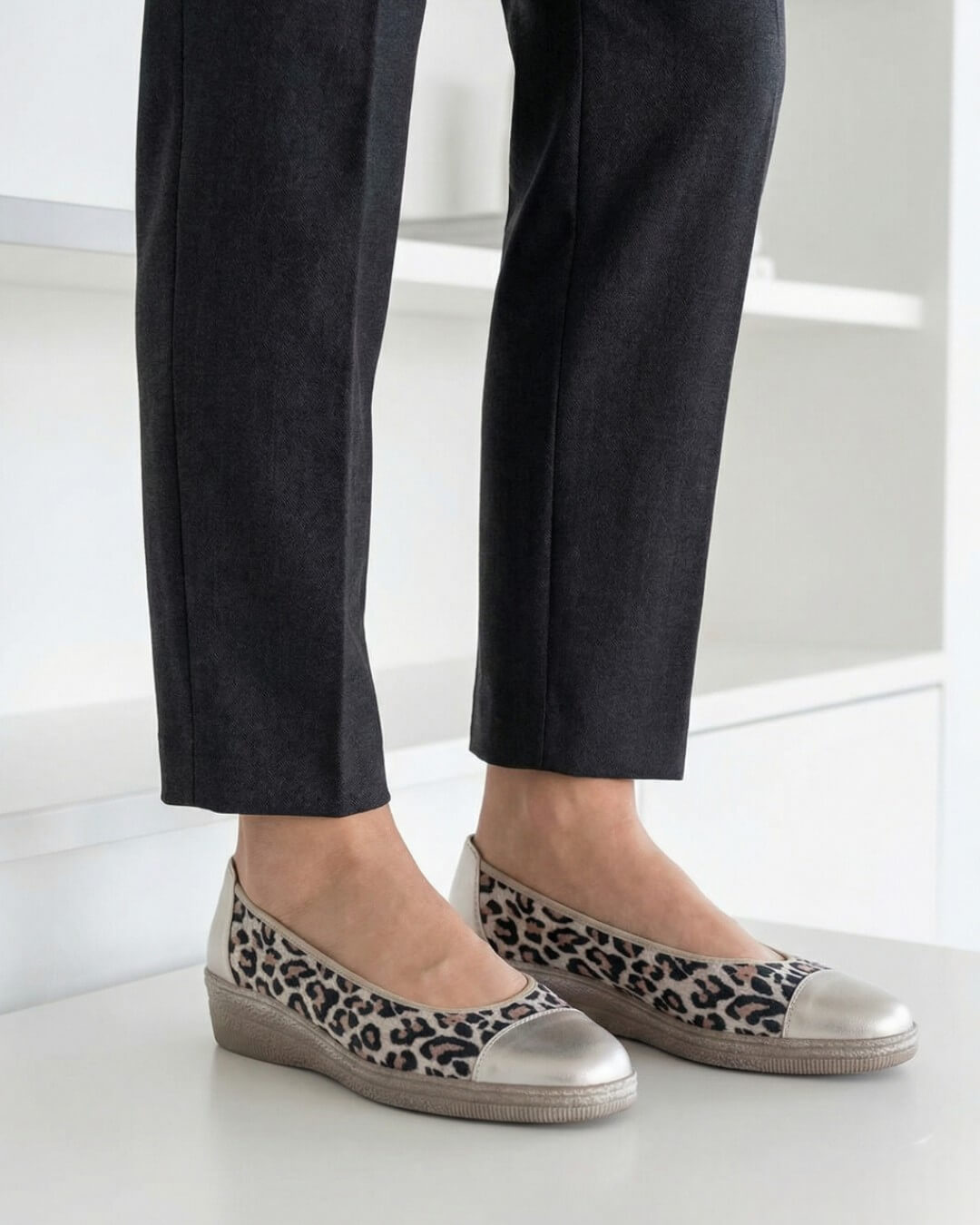 レオパード柄で華やかで遊び心のあるデザインの1足に仕上げました。