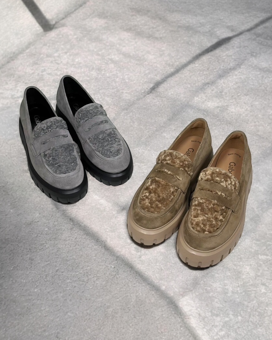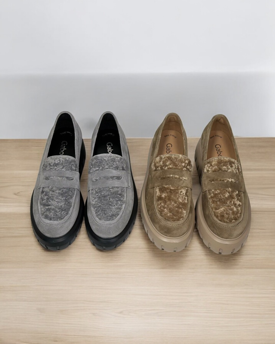 アッパーの甲の部分にウールのファーを使用しているコンビローファーです。