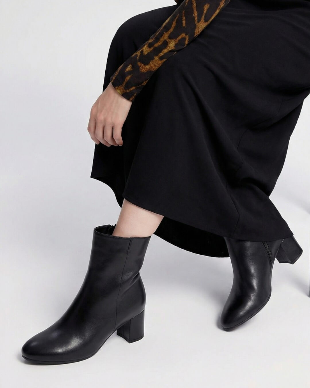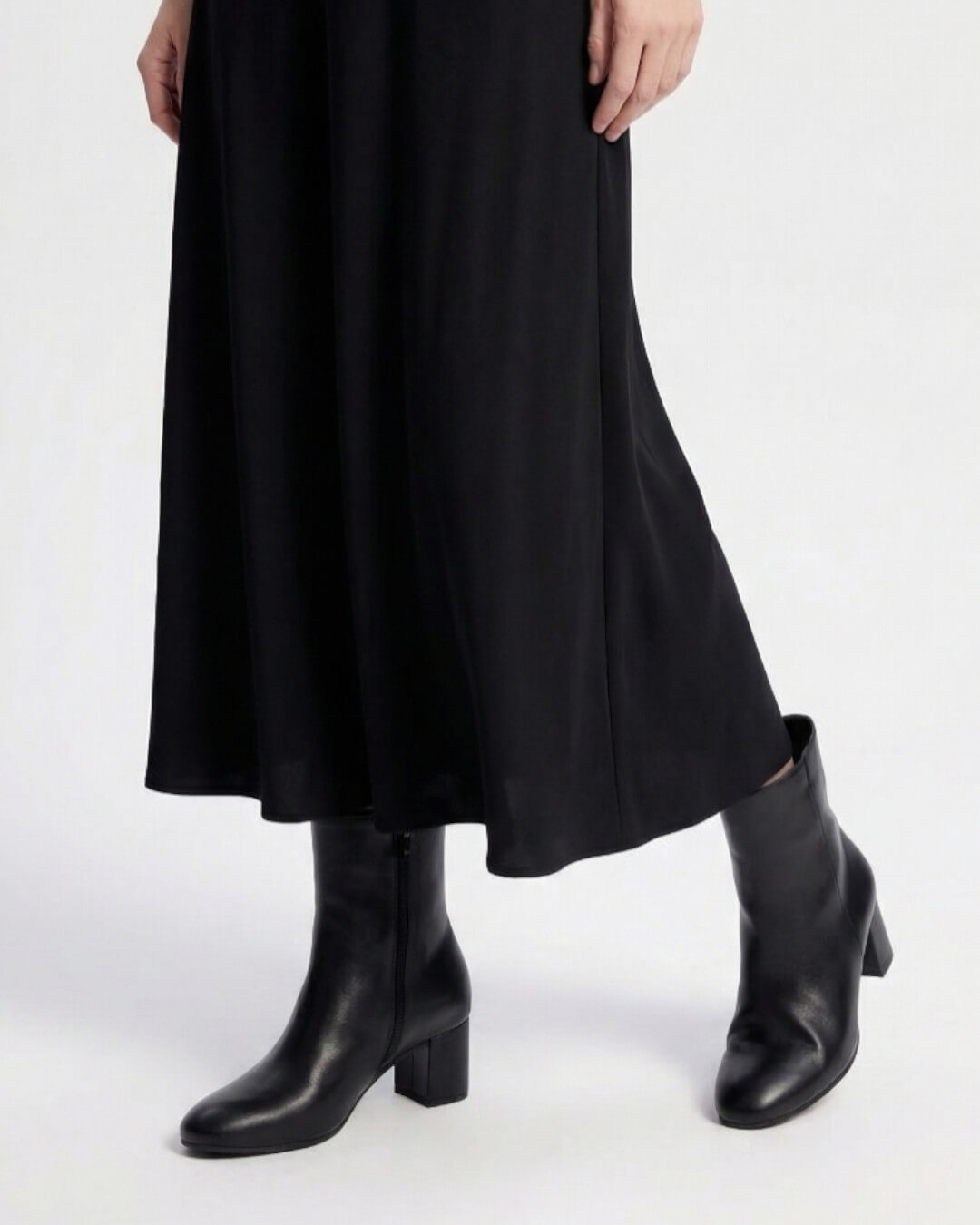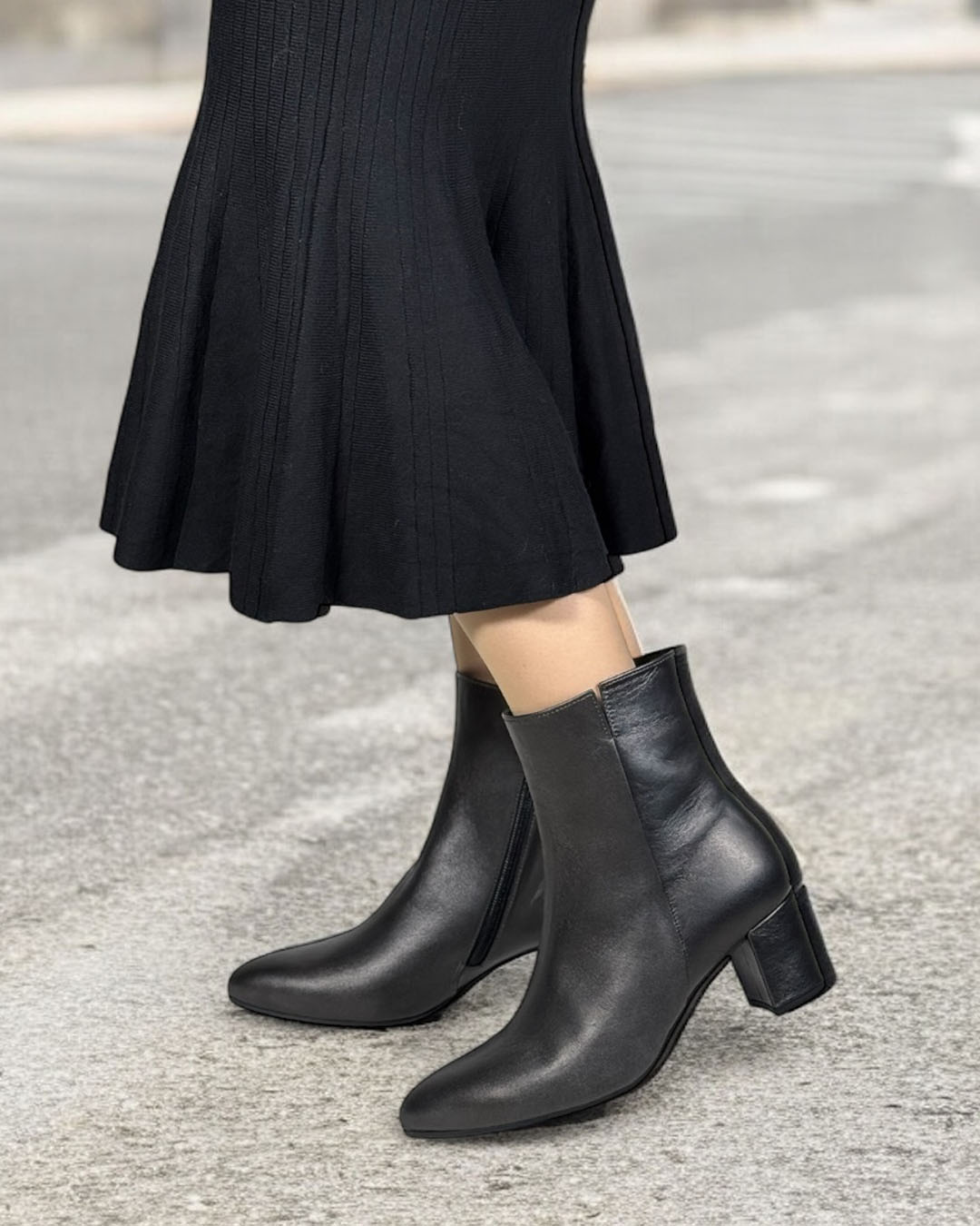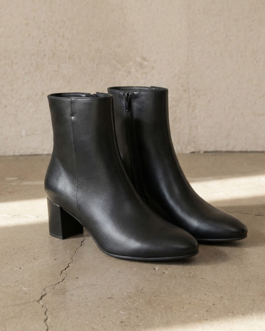 シンプルなブラックカラーのヒールショートブーツです。