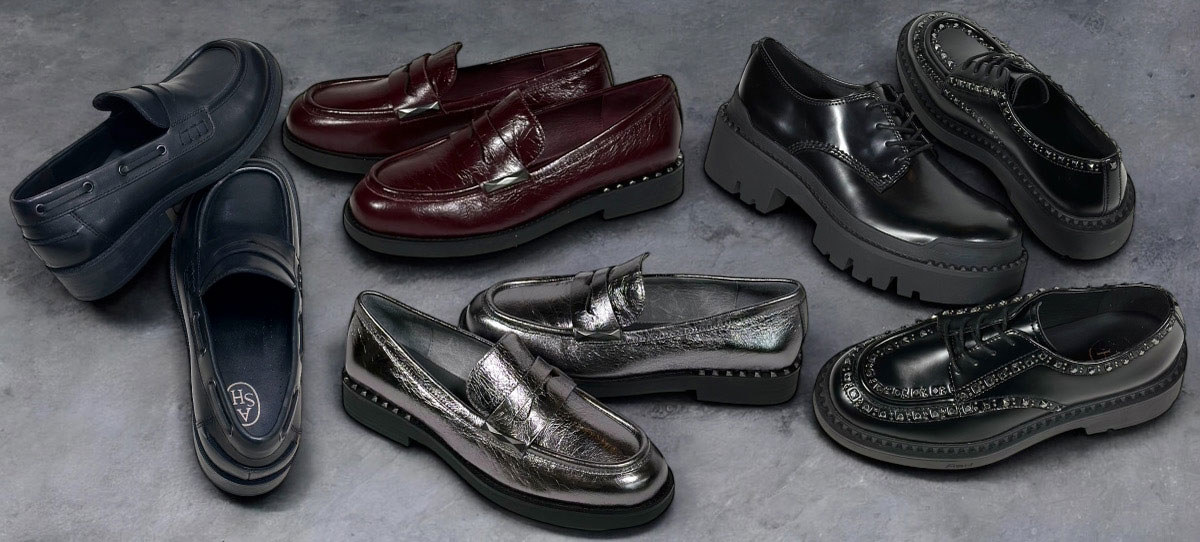 こっくりとした色の艶めくレザー、ASHらしさの光るスタッズや厚みのあるソールが生み出す存在感など、
