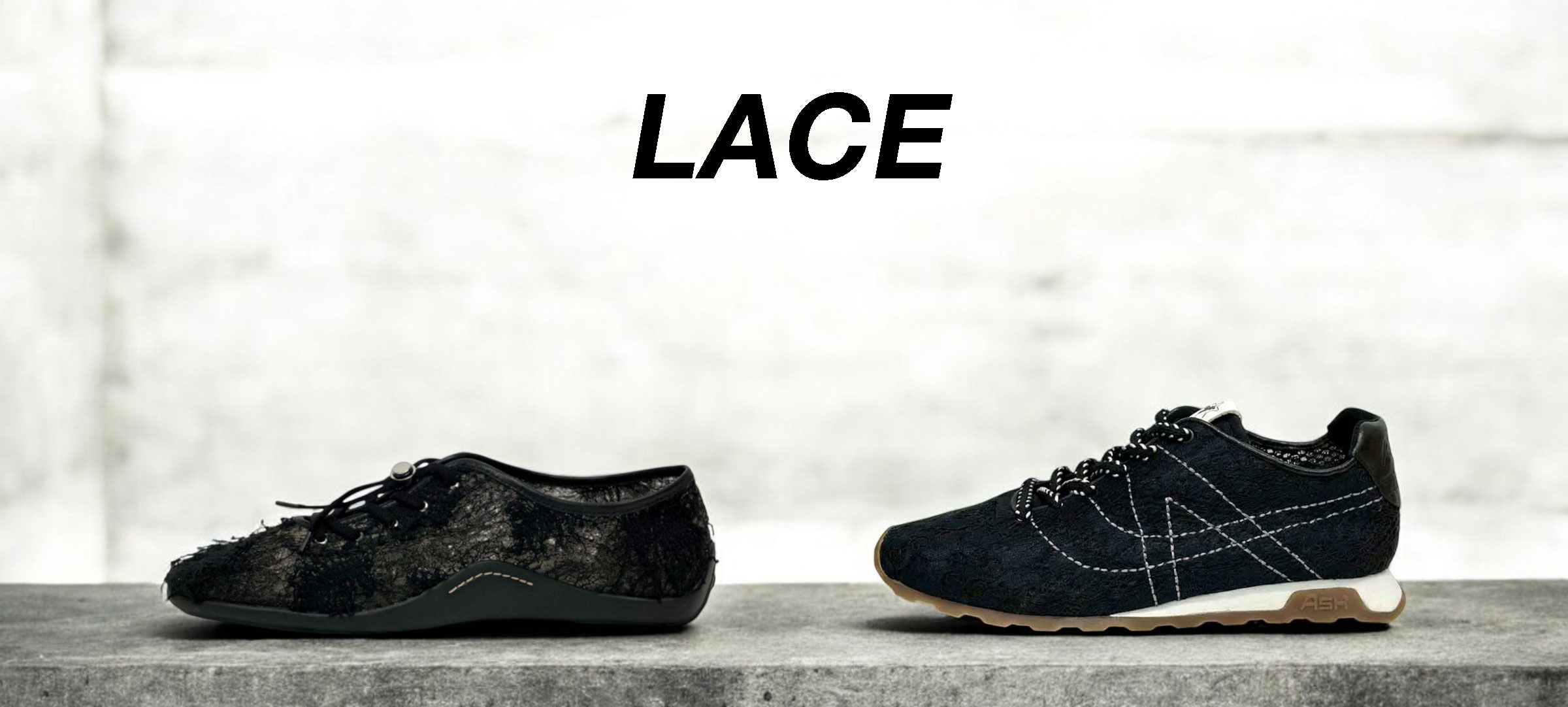 スポーティーなフォルムのシューズにレースの繊細なテクスチャーを重ねることで、カジュアルでありながらも上品さプラスしてくれます。