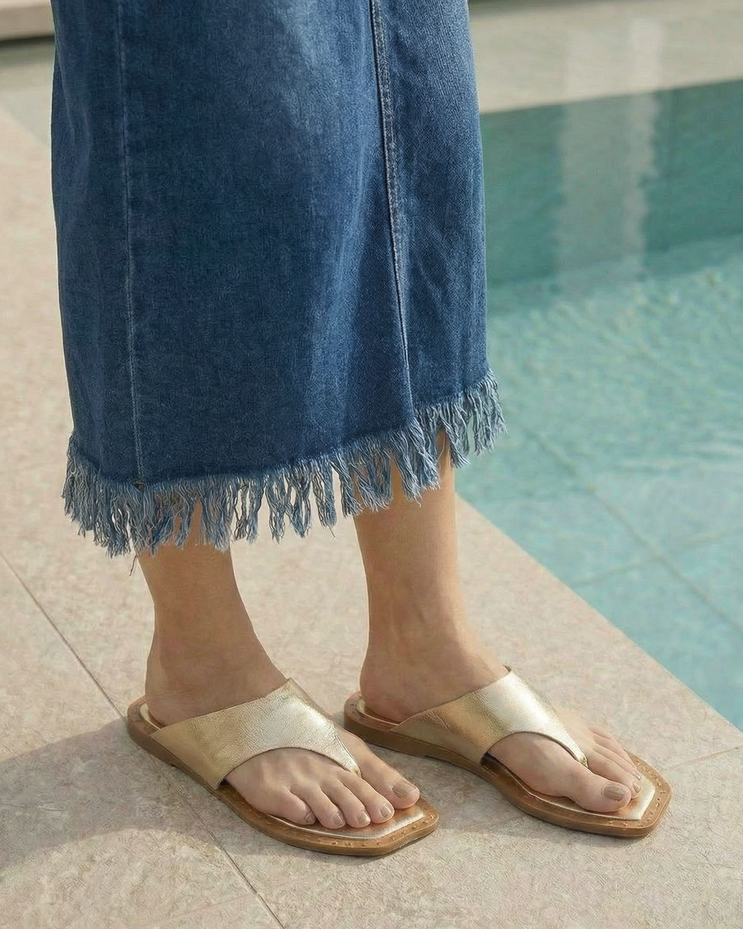 大人エレガンスな印象のフラットトングサンダル。