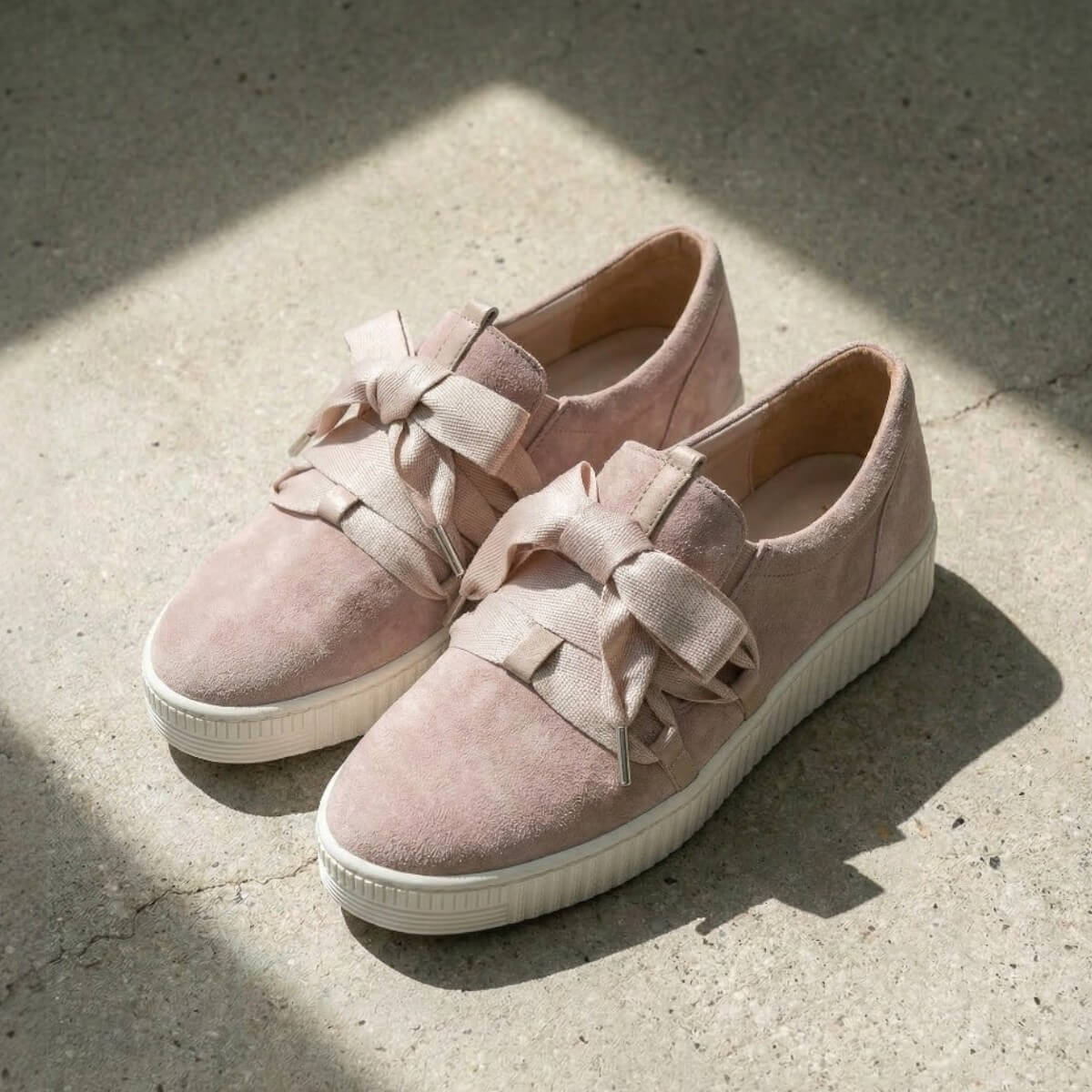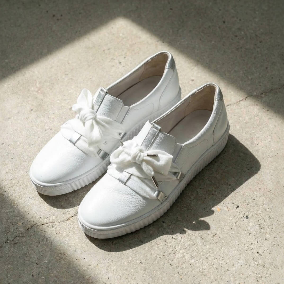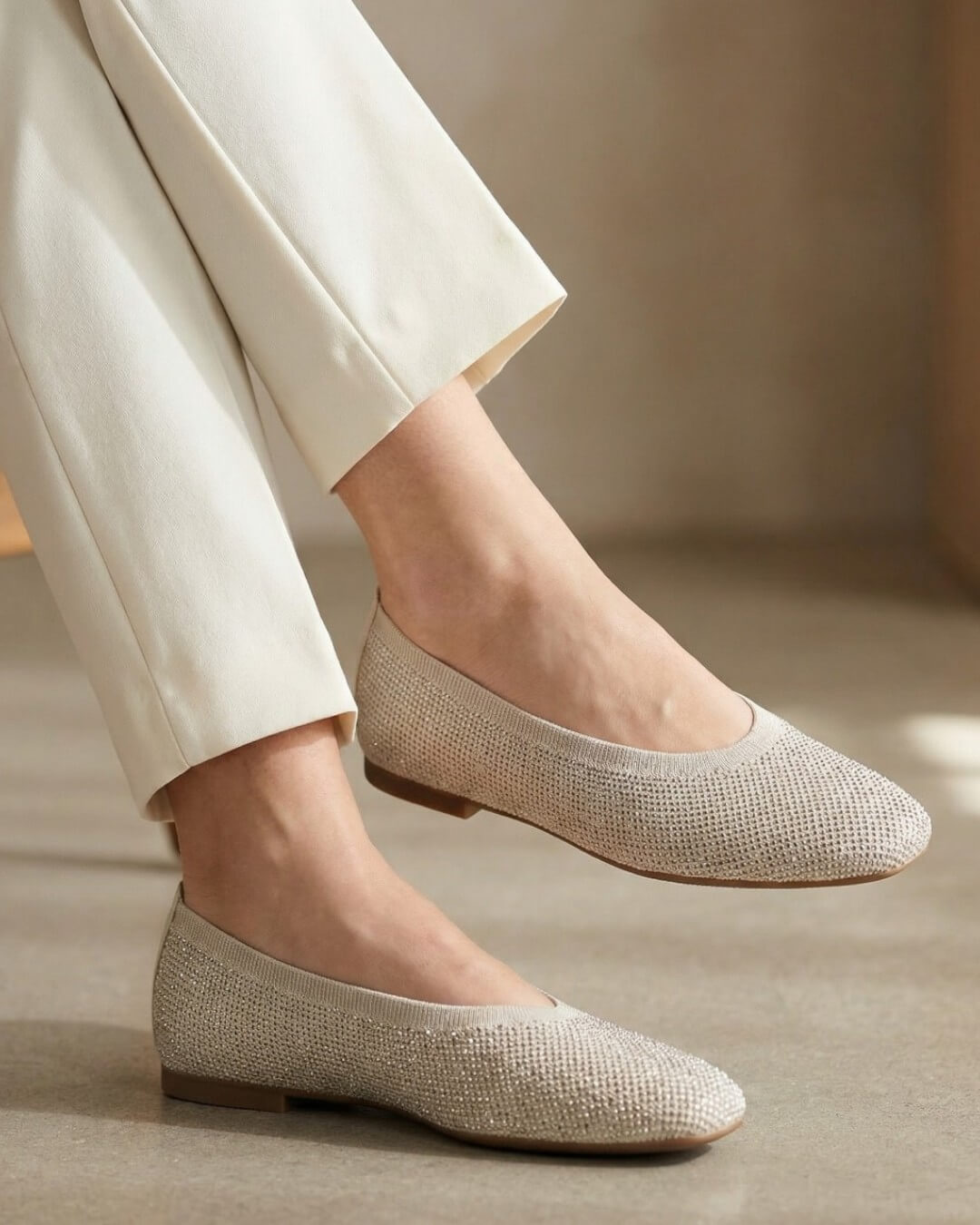 細かなラメが編み込まれたアッパーは、光を受けるたびにやさしくきらめき、