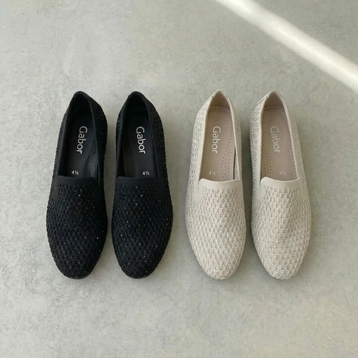 Gaborのラメニットのパンプスとローファー。