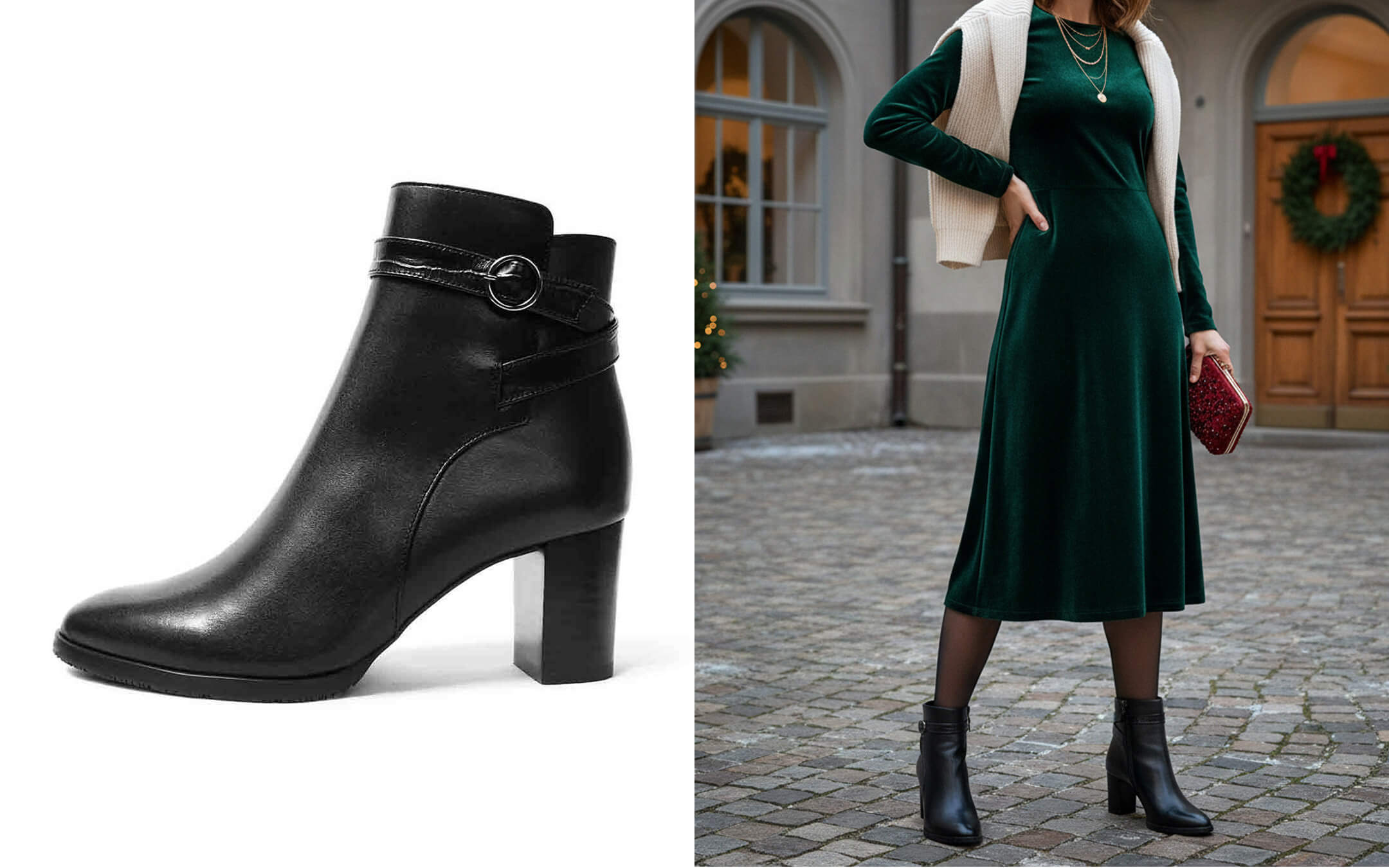 柔らかなレザーが足に優しく馴染み、上質なツヤ感がクリスマスコーデに自然な華やぎを添えます。