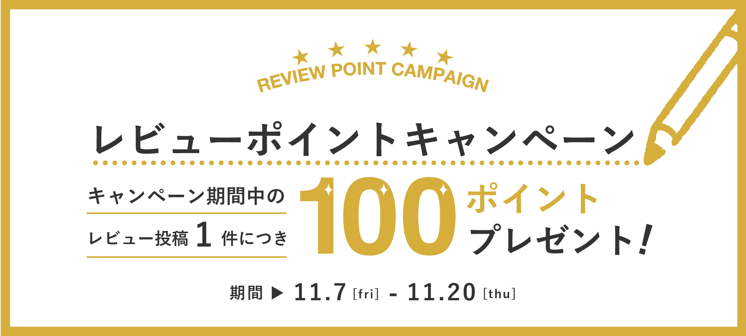 本日から11月20日(木)まで、レビュー投稿1件につき100ポイントをプレゼントするキャンペーンを開催!